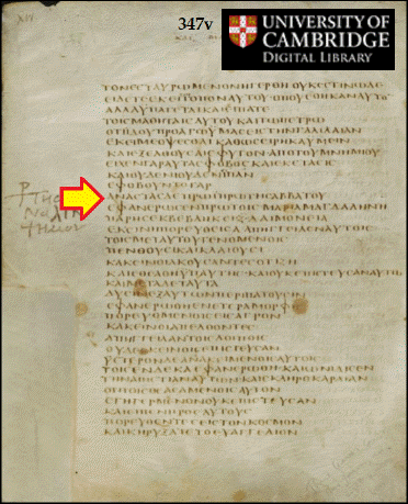 Codex D (Bezae) - Mark 16:9 follows 16:8