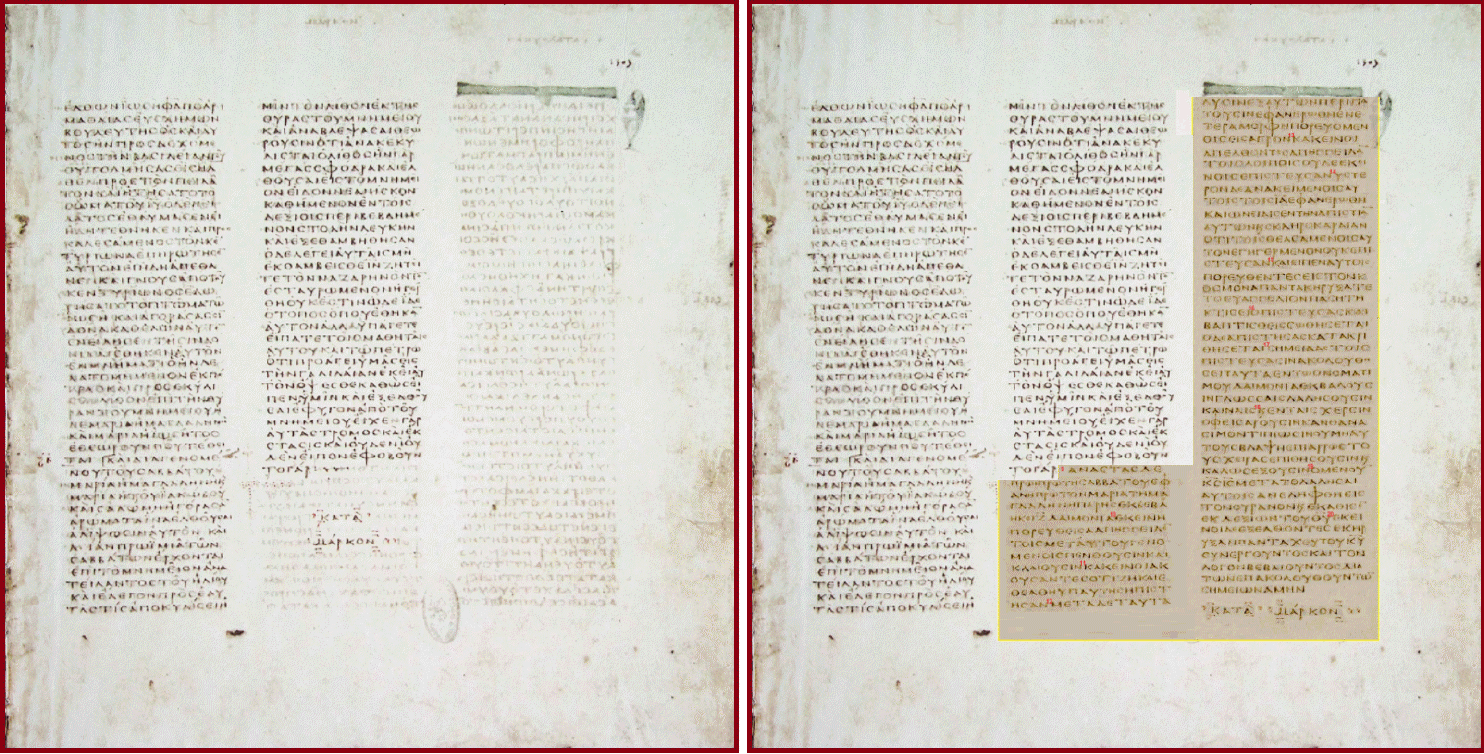 Codex Vaticanus (B) (digitally altered) - Using lettering from elsewhere on the page, Mark 16:9-20