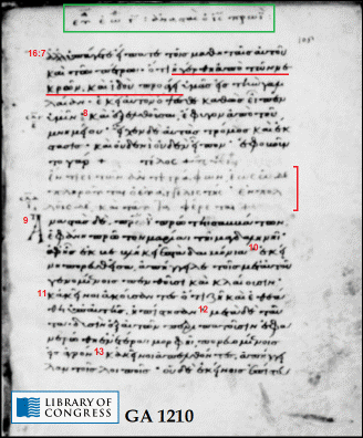 Also visible: at the top of the page, a note identifies Mark 16:9-20