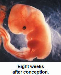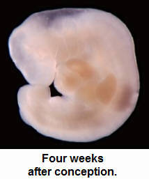 By the end of the first month after conception, the form of the pre-born individual has changed.